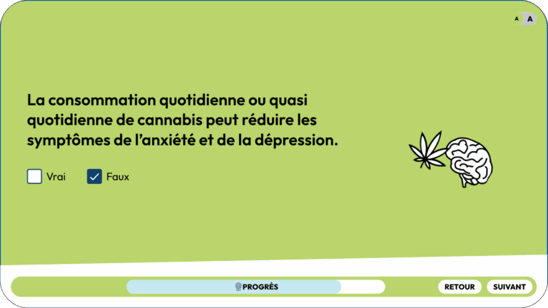 Vrai ou Faux : Utiliser du cannabis quotidiennement ou presque quotidiennement sur une longue période peut réduire les symptômes d’anxiété et de dépression.