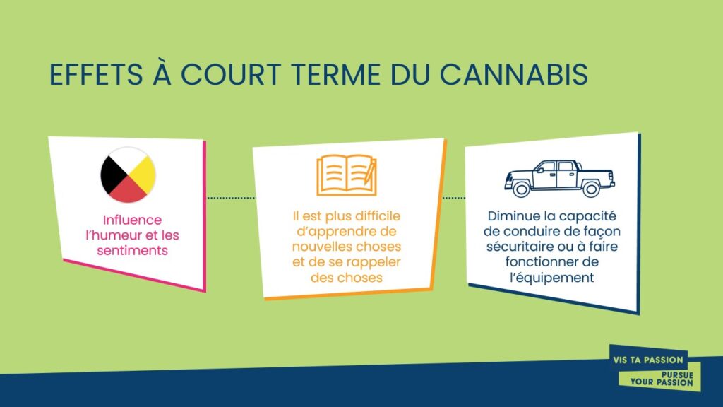 « Voici les effets à court terme de la consommation de cannabis » Affecte l’humeur et les sentiments – Si le cannabis peut parfois vous détendre et vous rendre heureux, il peut aussi vous mettre mal à l’aise, notamment vous rendre anxieux, paranoïaque et déprimé.