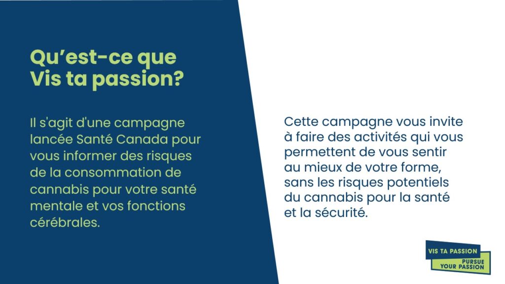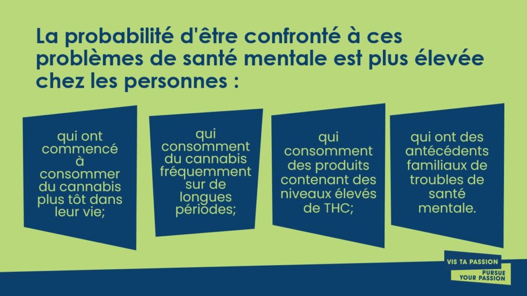 « Saviez-vous que les jeunes et les jeunes adultes qui consomment du cannabis, en particulier du cannabis contenant du THC, sont plus susceptibles de souffrir de problèmes de santé mentale?