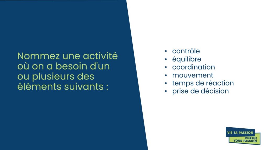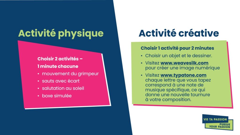 | Participer à des activités qui vous passionnent | (2-5 mins) |
